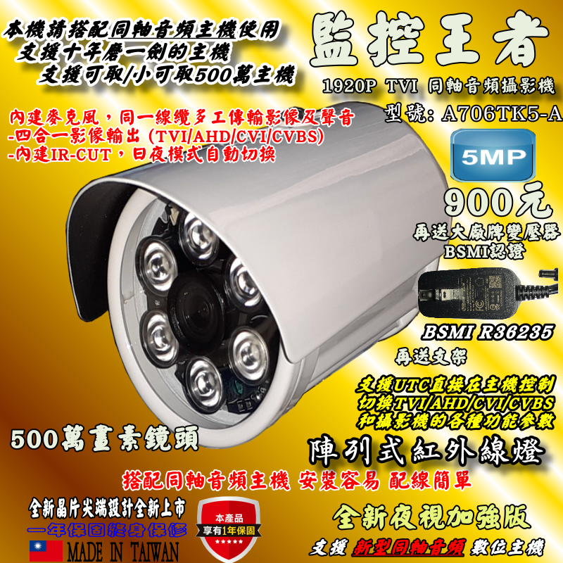 A706TK5-A 1920P 5MP同軸音頻攝影機