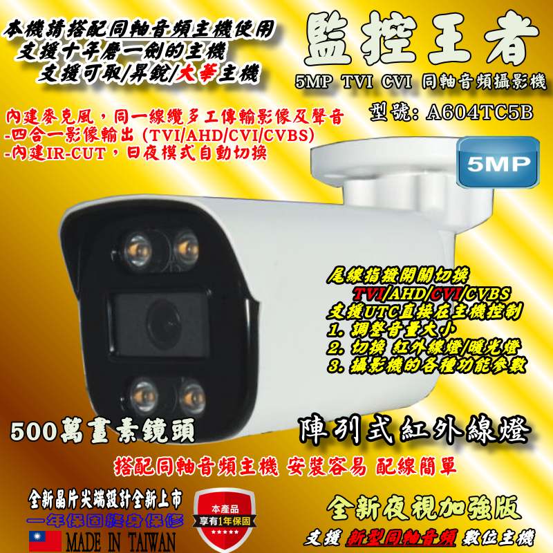 A604TC5B 500萬畫素 雙光雙音同軸音頻攝影機