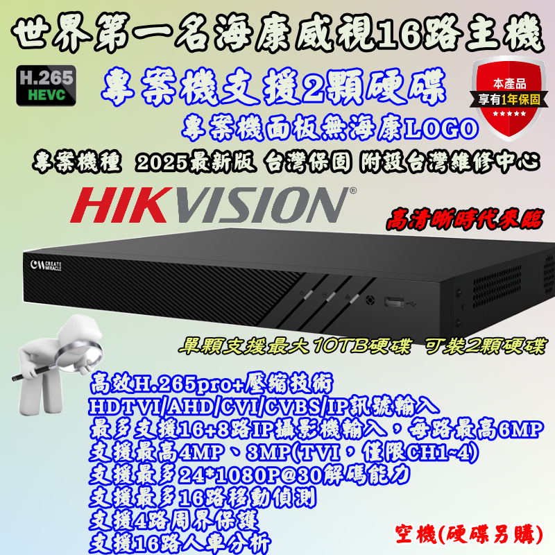 海康威視 16路 (支援雙硬碟) 專案機種 2025最新版 台灣保固 附設台灣維修中心